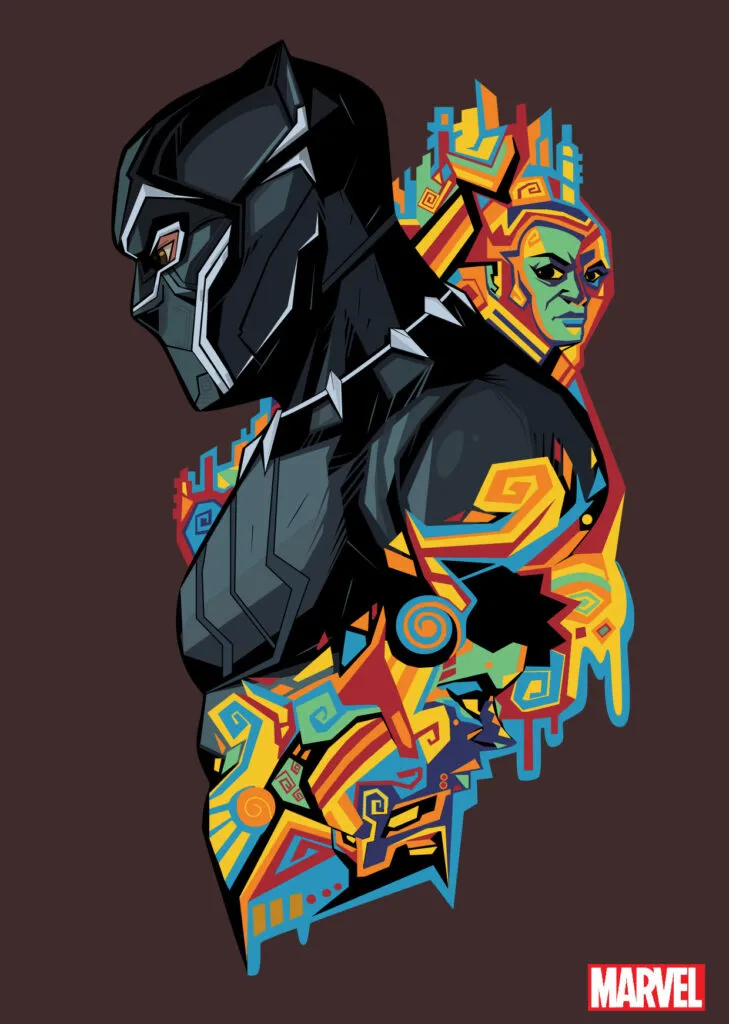 Ilustración hecha en Adobe Ilustrator basada en el personaje llamado Pantera Negra del universo de Marvel. El objetivo de este trabajo era implementar la pluma, una de las principales herramientas de ilustrator.