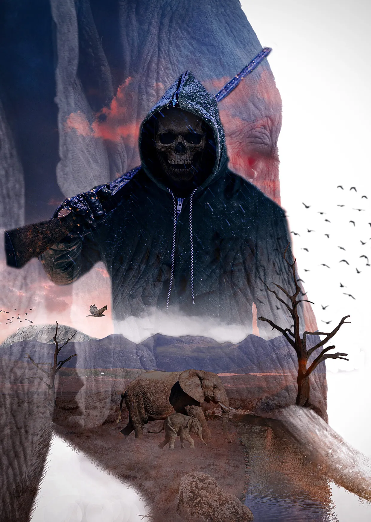 Este fotomontaje de doble exposición fue realizado con Adobe Photoshop. Un poster inspirado en The Last Of Us, cuya franquicia cuenta con dos famosos videojuegos y una reciente serie en las plataformas de streaming. En esta composición se utilizaron variedad de pinceles, texturas y mascaras que enriquecieron el resultado final. Ademas, se añadió la guitarra como eje principal de la composición ya que en la historia este objeto tiene una gran carga emocional. Esto, junto al tratamiento de la tipografía desgastada terminan generando el resultado final del montaje.